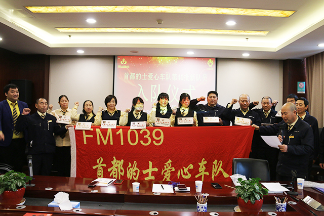 活动现场,三位领导致辞后为20多名新队员颁发了爱心车队标识牌和佩戴胸章。随后,新老队员进行了庄严宣誓,重温了车队的发展历程和入队纪律,标志着这支特别的车队除了有“添丁”的喜悦,更有一份爱心的承诺。据悉,首都的士爱心车队是由来自不同出租车公司的的哥的姐自发组成,他们积极投身公益、奉献爱心,并常年为70岁以上老人和肢残者单独提供免费乘车服务,关心和帮助弱势群体,在京城出租车行业乃至全国都有非常大的影响力。