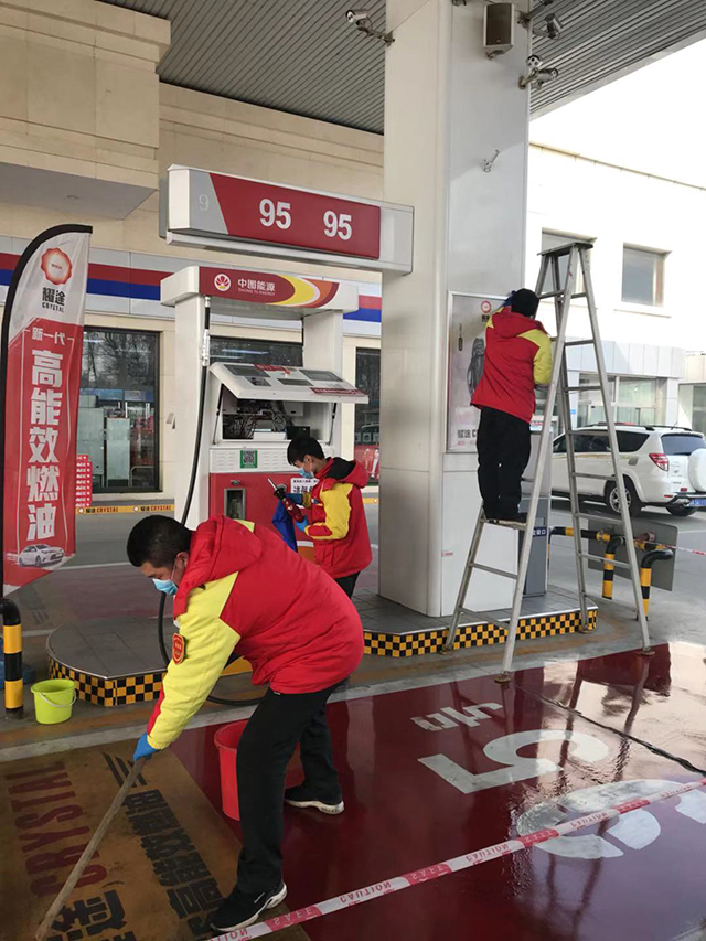 为加强加油站现场的安全防护,做好员工自身以及设备的防病毒管理,各加油站利用消毒液对加油站现场、办公场所、便利店、员工宿舍、食堂等进行每日清洁和消毒处理。同时利用微信、LED屏进行防疫知识宣传,提高所有员工的安全防护意识,做好安全防护与油品保供工作,为客户营造一个安全、放心、舒适的加油、购物环境!